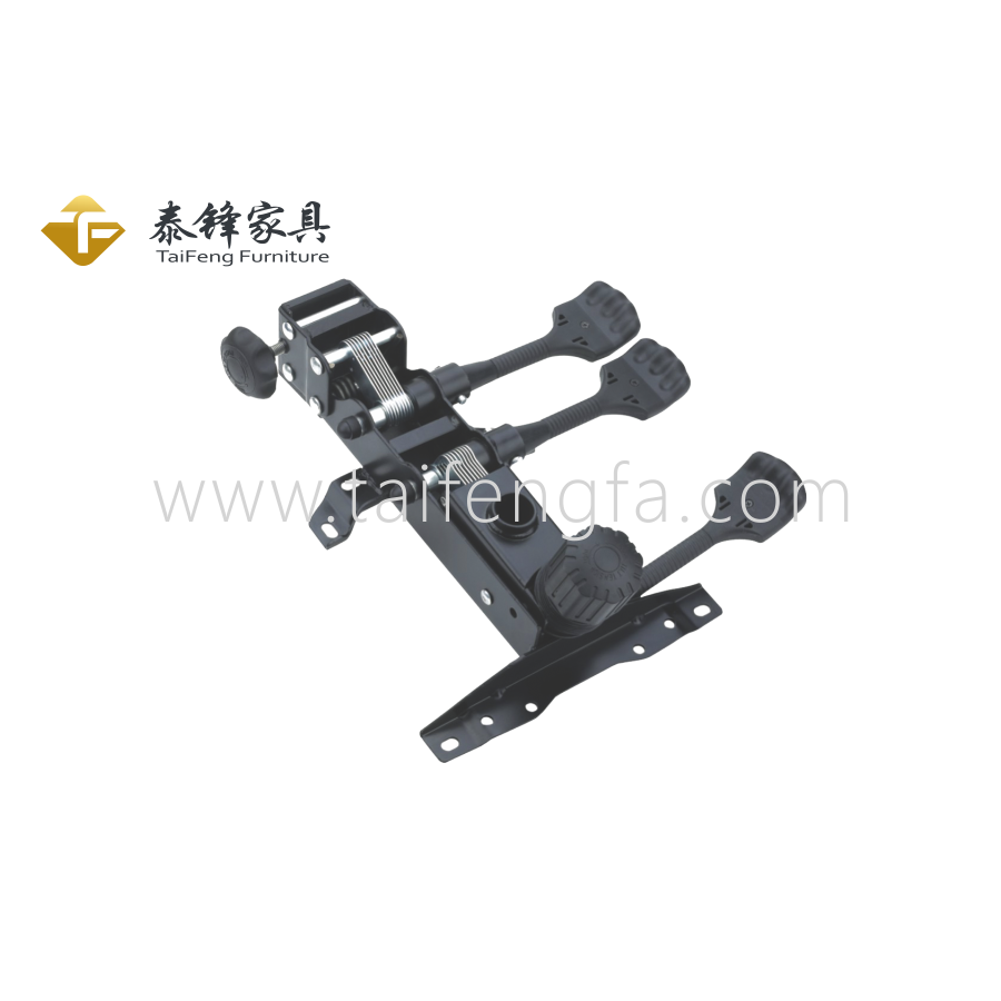The backrest is supported by a steel plate and the height is adjustable by pulling it.